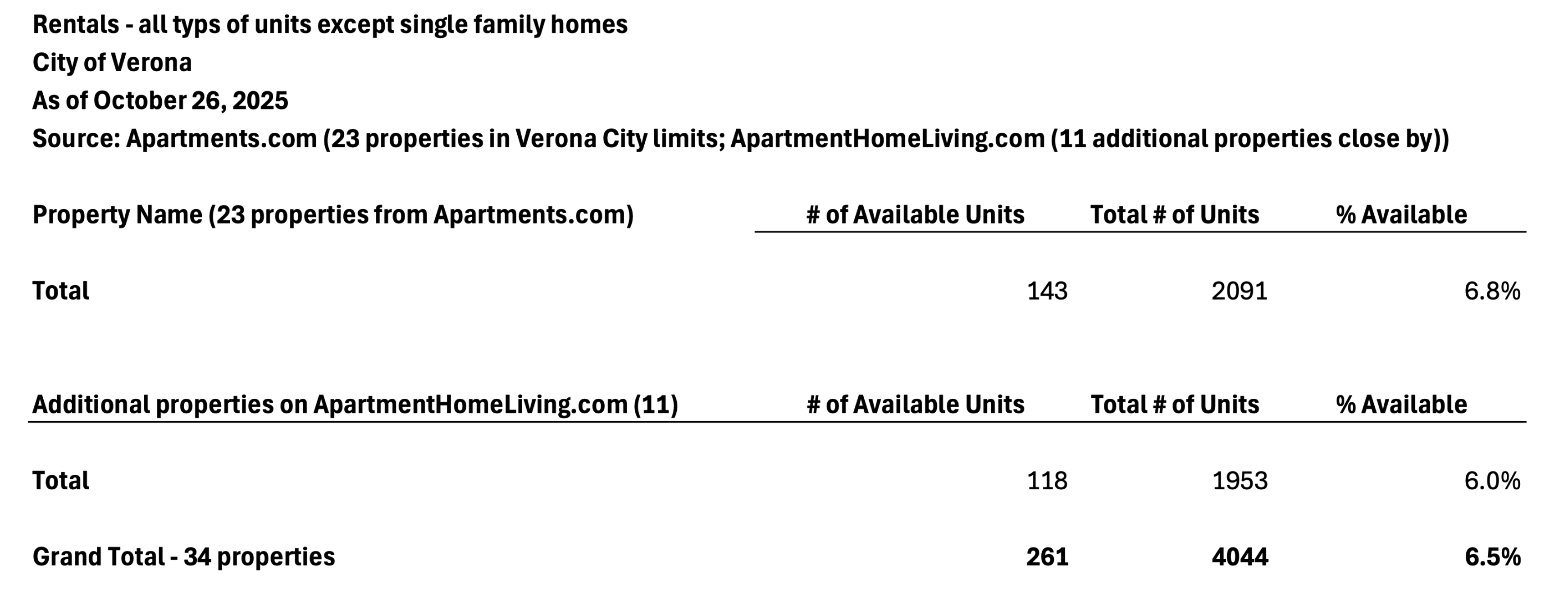 Rents are rising (19%) even though Verona is in the top 1% nationally in MFU growth.