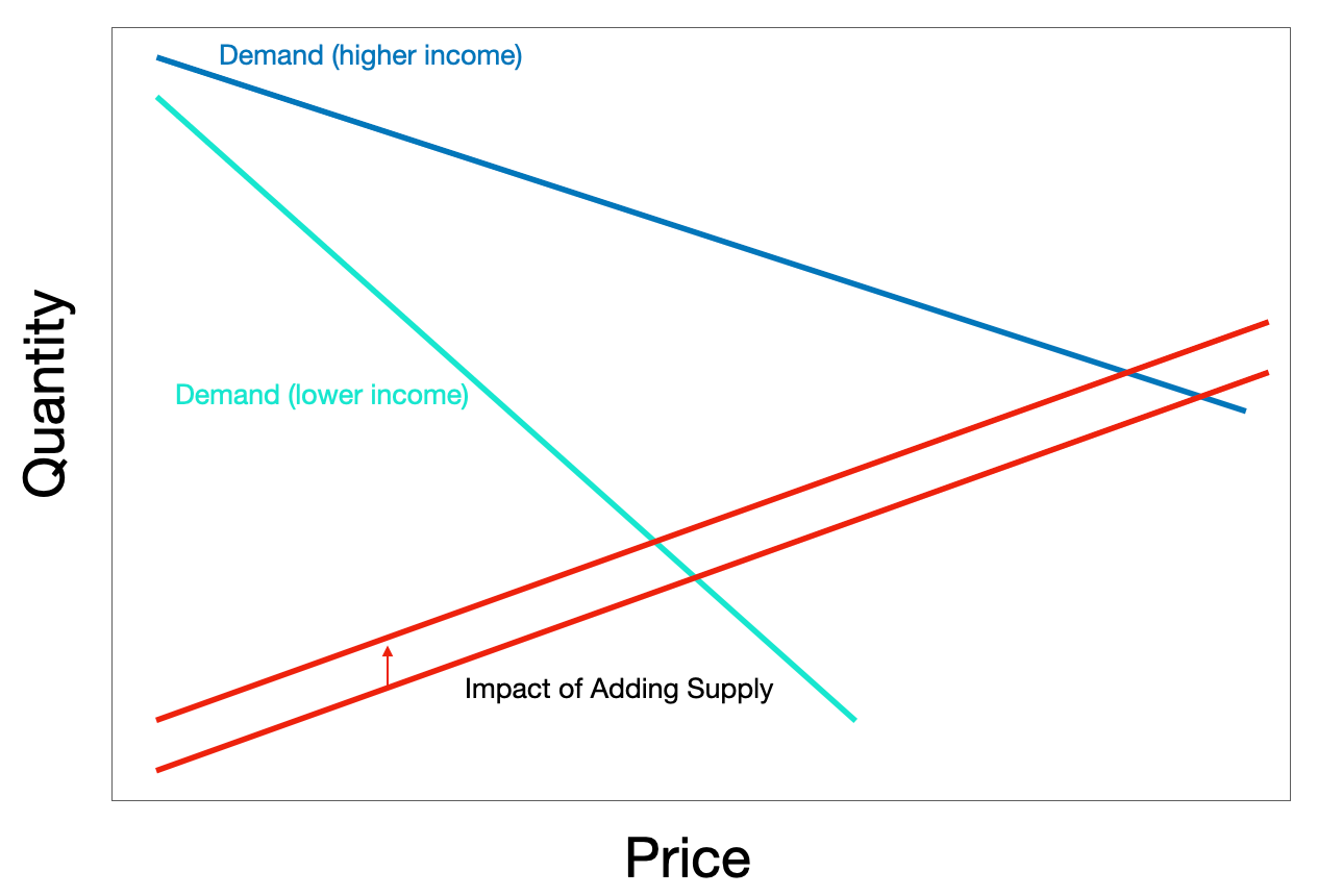 finds that new market-rate construction slightly lowers city-wide rents, but effects are small and depend on unit type and location. Supply helps but doesn’t guarantee affordability.